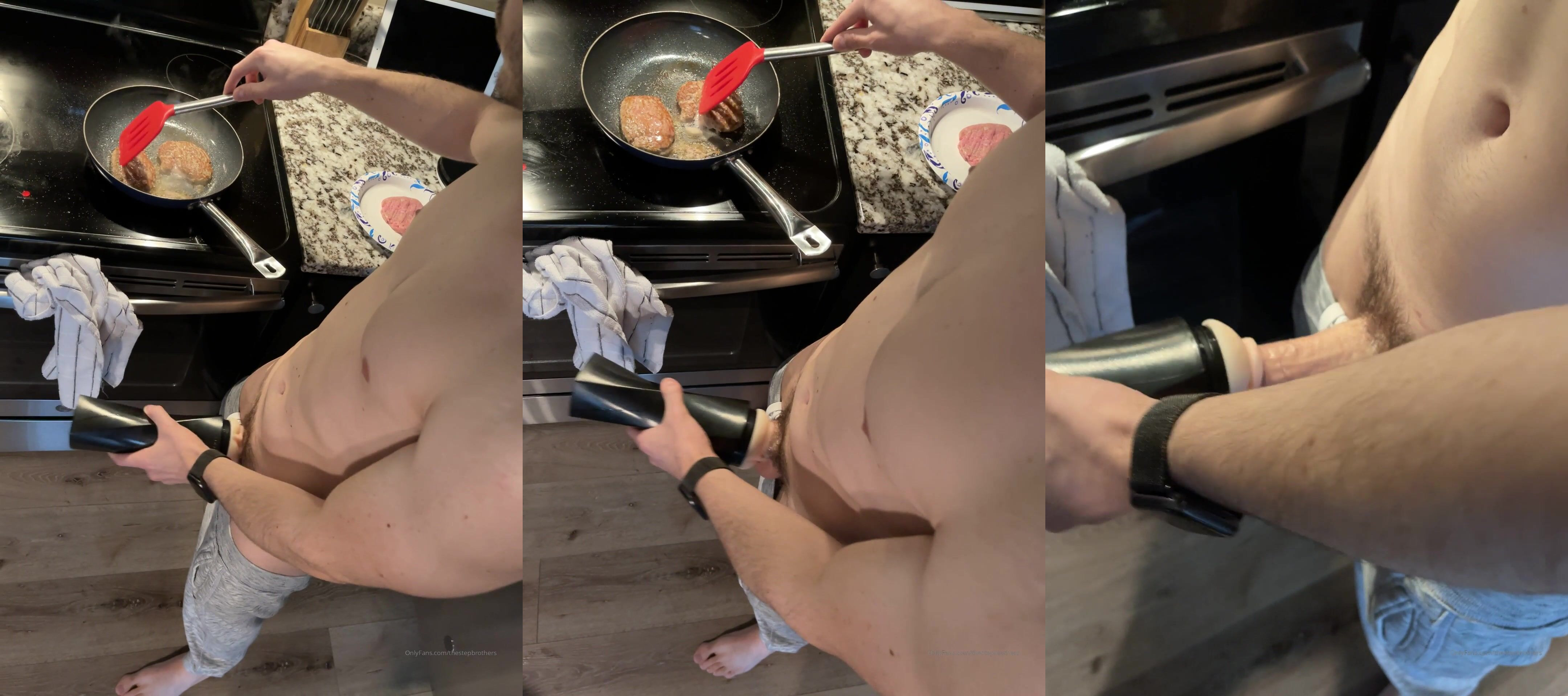 TheStepBrothers - Lil bro uses a fleshlight while cooking - 48 secs - free gay porn