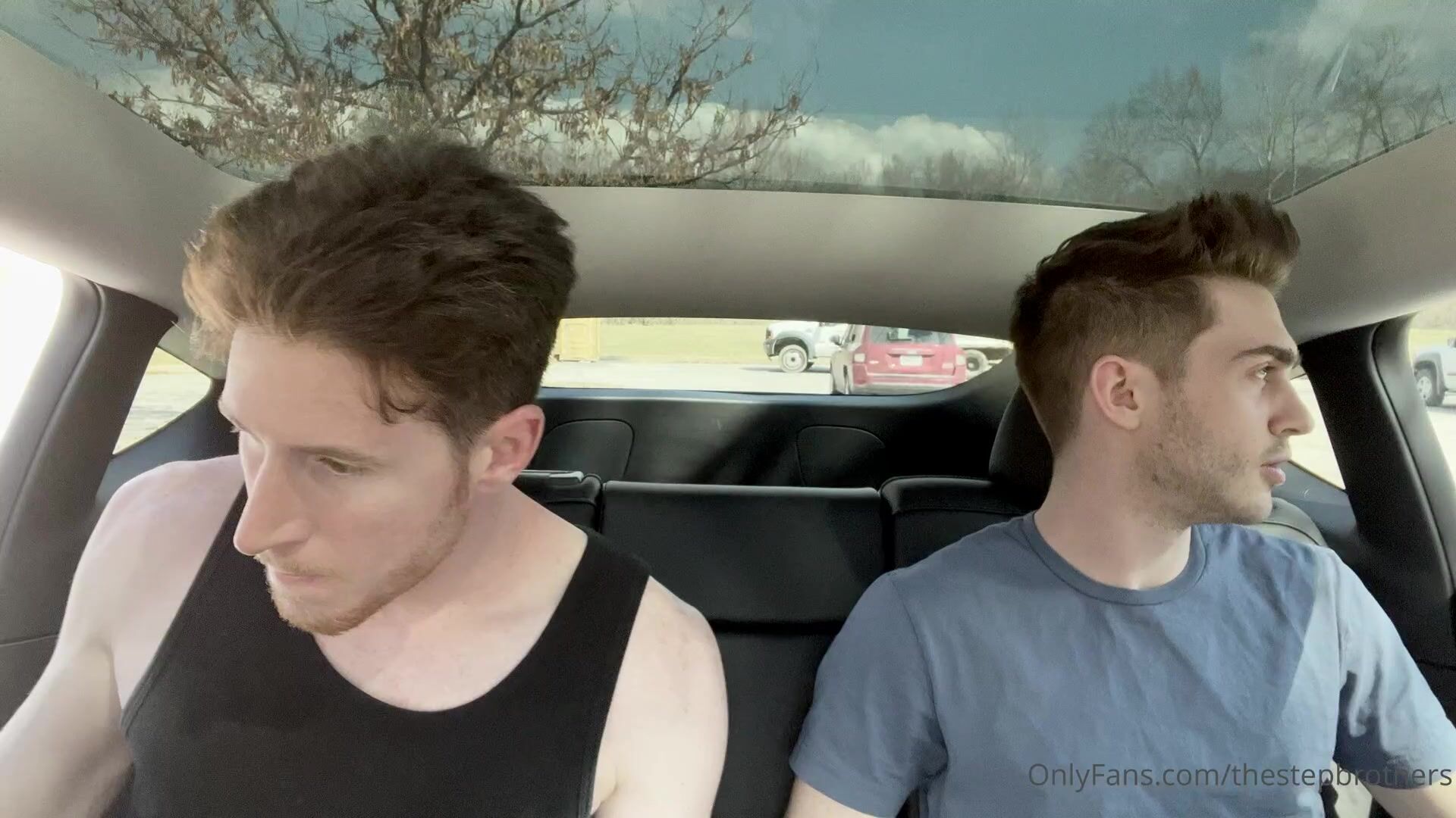 TheStepBrothers - Lil bro and Big bro have a bit of a snog in the car - 1 min - free gay porn
