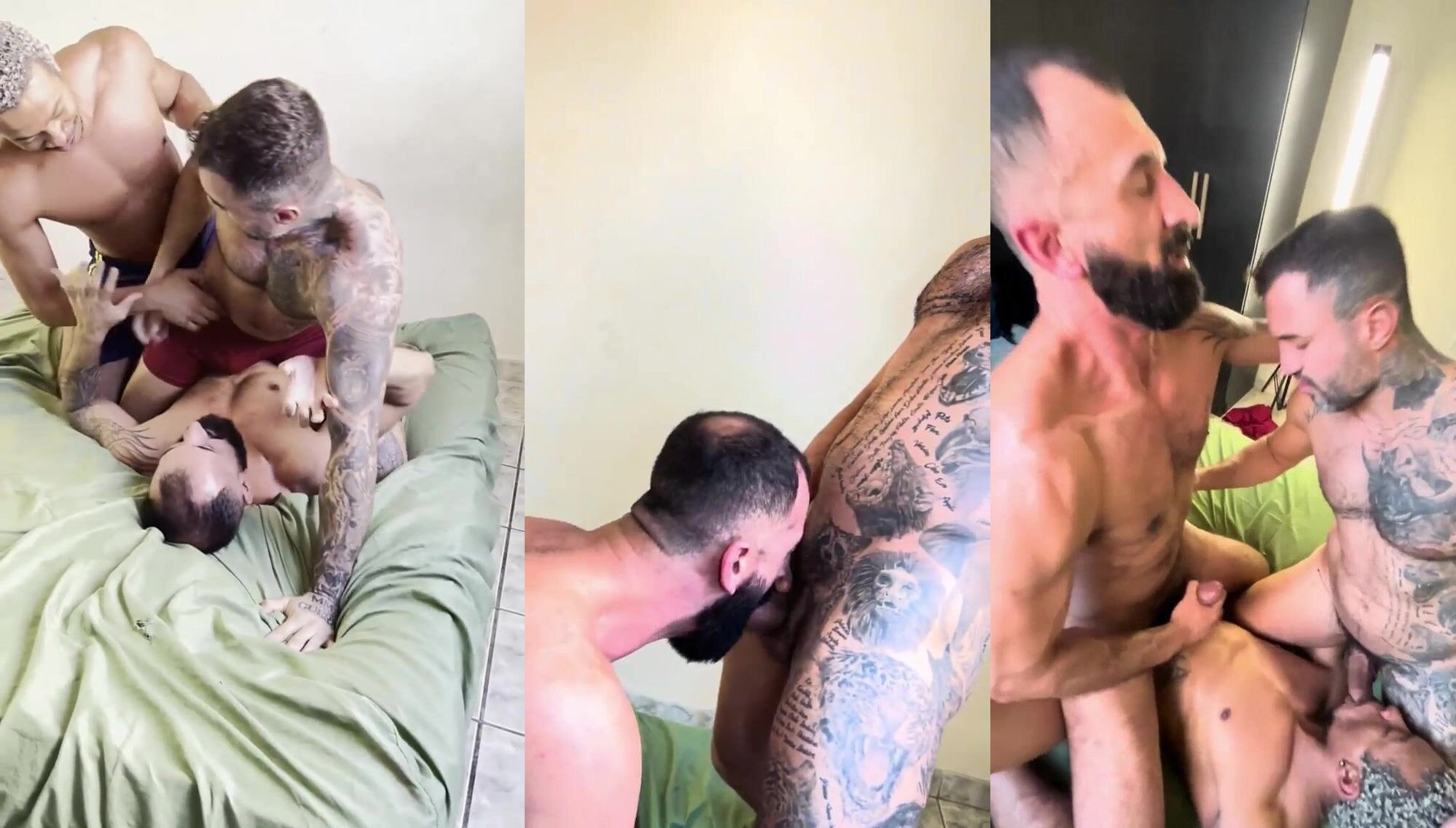 Three sweaty bodies tangled in a fight for dominance GABRIEL PAX - free gay porn