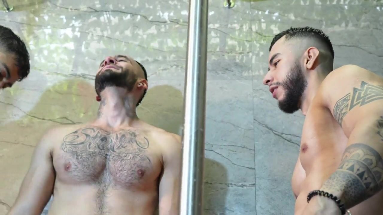Delicious encounter in sauna threesome Camilo Lopez - free gay porn